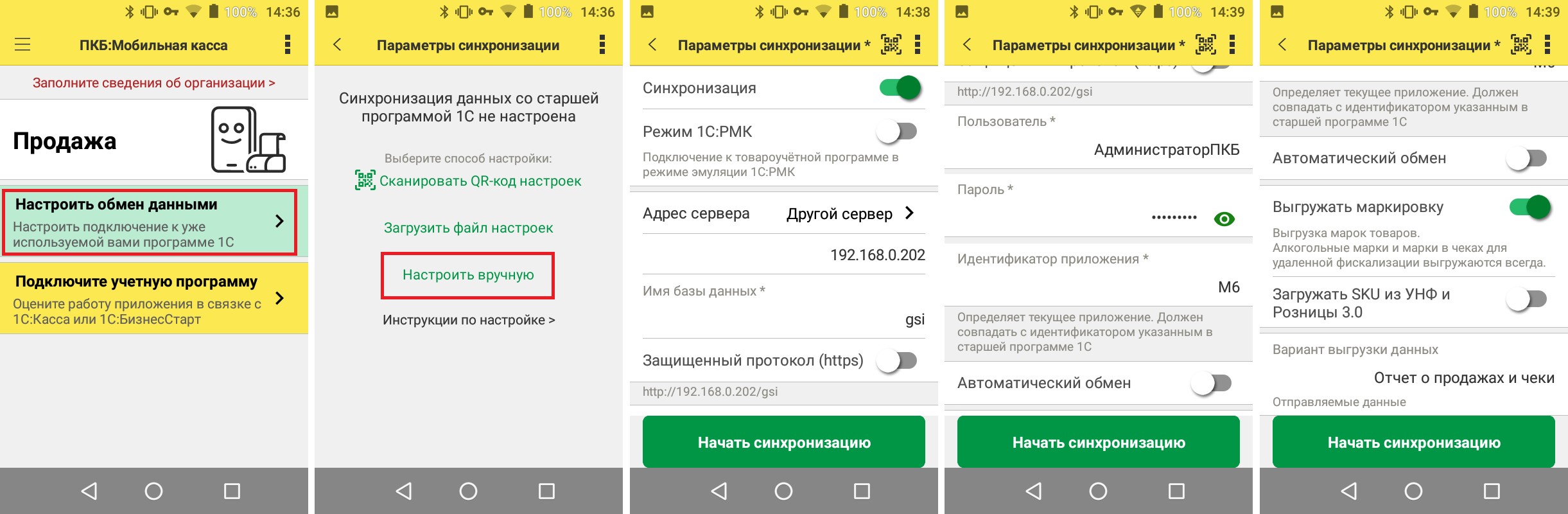 Настройка синхронизации со стороны Мобильной кассы